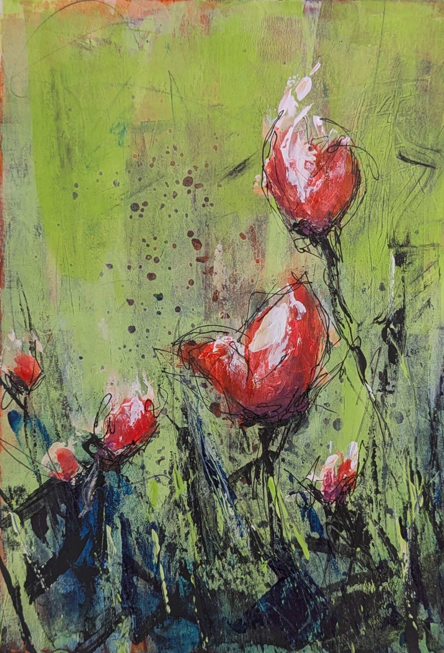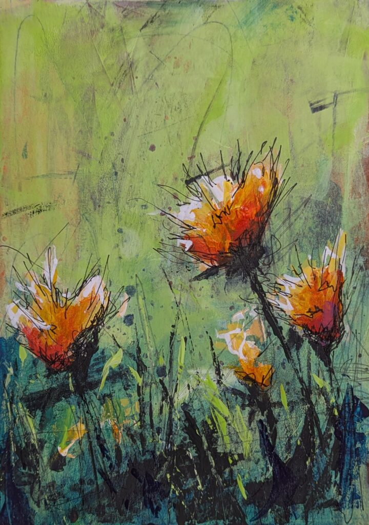 This page features a selection of my abstract paintings, most are developed through an intuitive, process-driven studio practice. Working primarily with acrylic paint and mixed media, each piece evolves through layering, adjustment, and response rather than a predetermined plan. The work is guided by close looking and deliberate decision-making, allowing form, color, and structure to emerge gradually over time.
