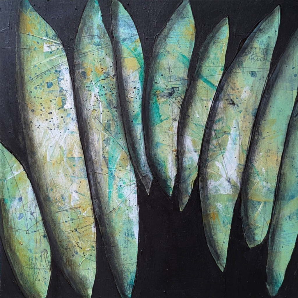 Across the work shown here, I’m interested in how abstraction can carry mood, structure, and quiet narrative without relying on recognizable imagery. Influences from film, visual storytelling, and ongoing conversation inform my approach to pacing, contrast, and composition, shaping how each painting resolves.
